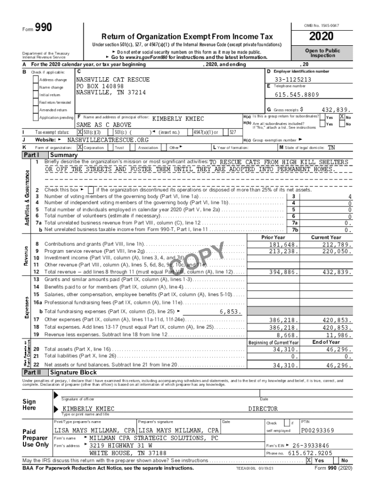 Get the free Nashville Cat Rescue - Form 990 FYE 12.31.20