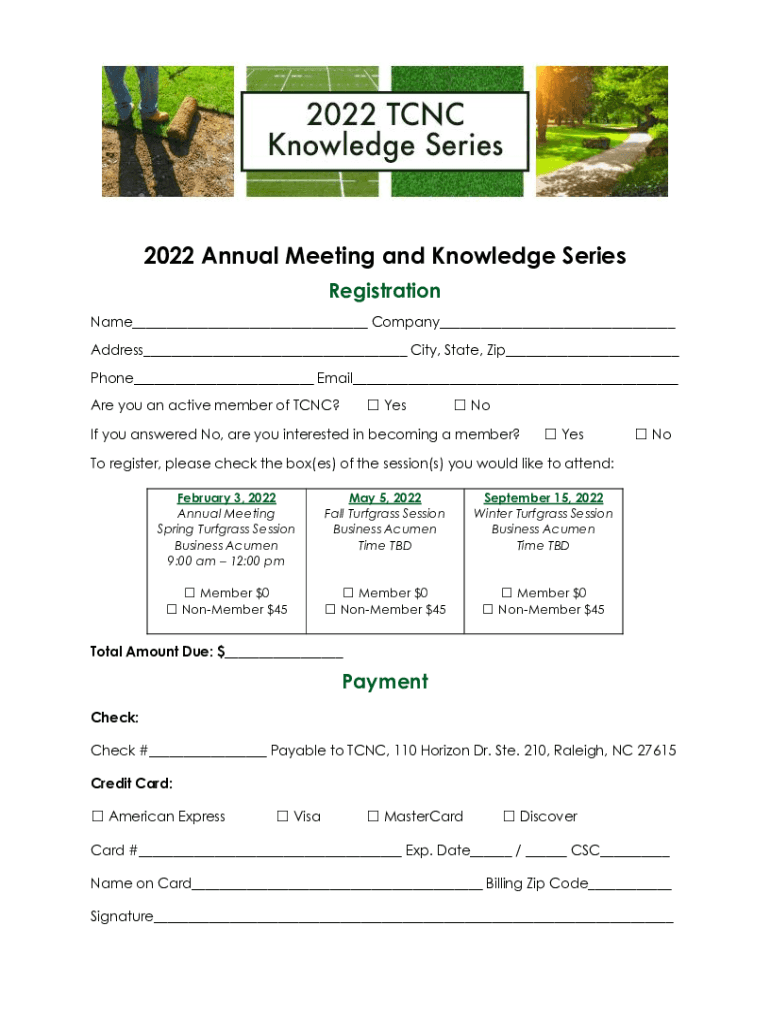 2022 Annual Meeting and Knowledge Series Registration Name___ Company___ Address___ City, State, Zip___ Phone___ Email___ Are you an active member of CNC? Yes Coif you answered No, are you interested