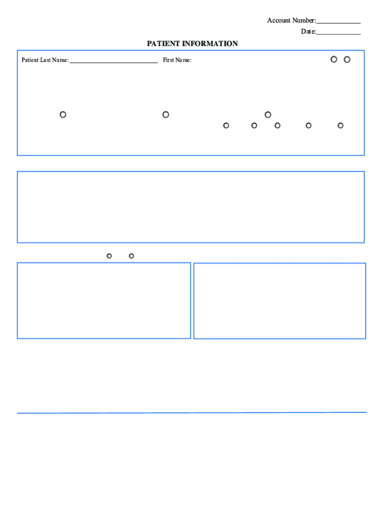 Account Number: Date:PATIENT INFORMATION Patient Last Name:0,BBB 6H×0)First Name:Name You Prefer:SSN: ___Address:City:Date of Birth: ___State:Zip:(Please check preferred phone number for contact
