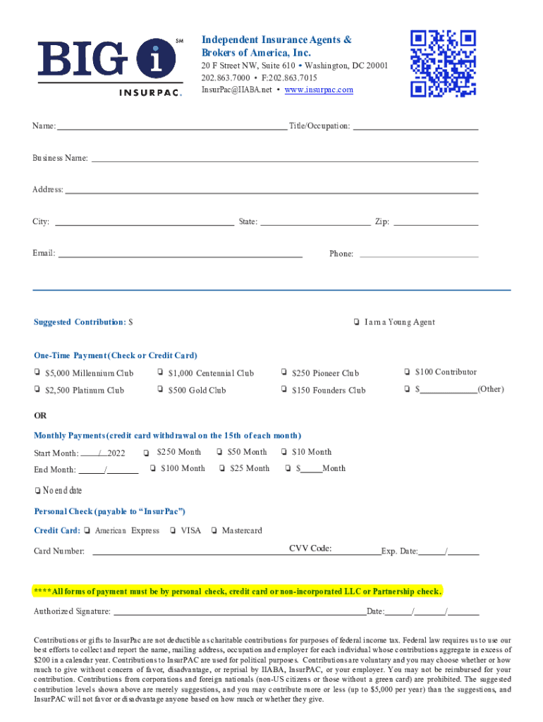 Independent Insurance Agents & Brokers of America, Inc.20 F Street NW, Suite 610 Washington, DC 20001 202.863.7000 F:202.863.7015 Insurance×II ABA.net www.insurpac.comTitle×Occupation:Name: Business