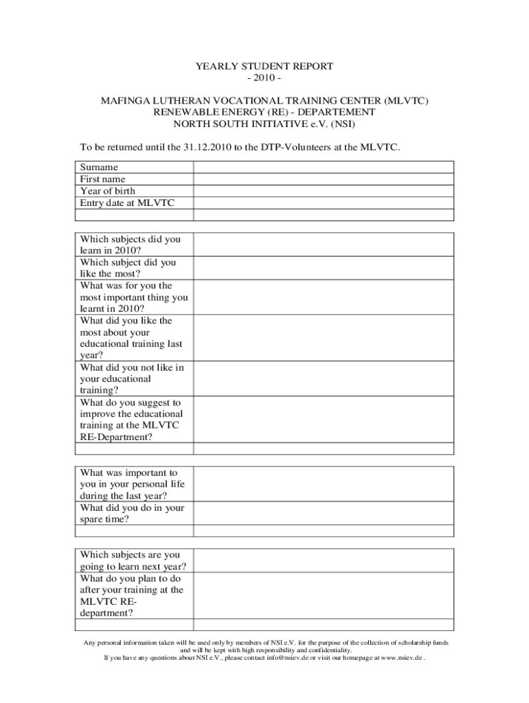 Refer to the guidelines provided by the educational institution or school district to understand the specific format and requirements for the yearly student report form.