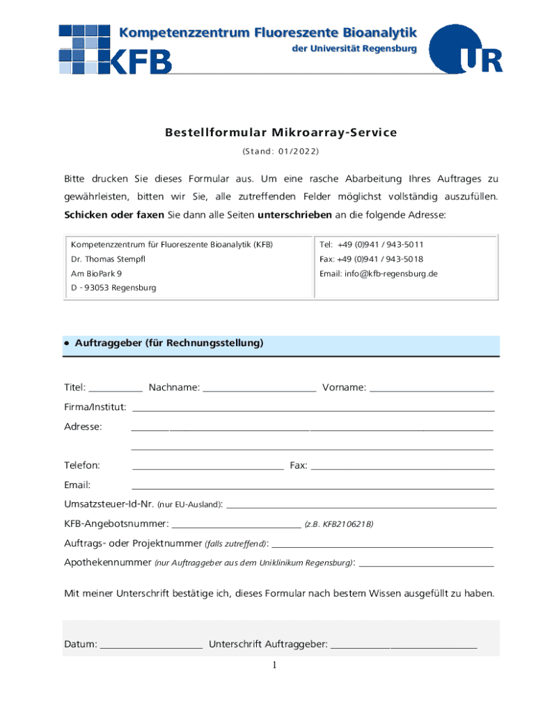 Kompetenzzentrum Fluorescence Bioanalytic her University RegensburgBestellformular MikroarrayService (S t and : 01 ×2 02 2×Bitter drunken She daises Formula AUS. Um and race Acerbating Three Outrages
