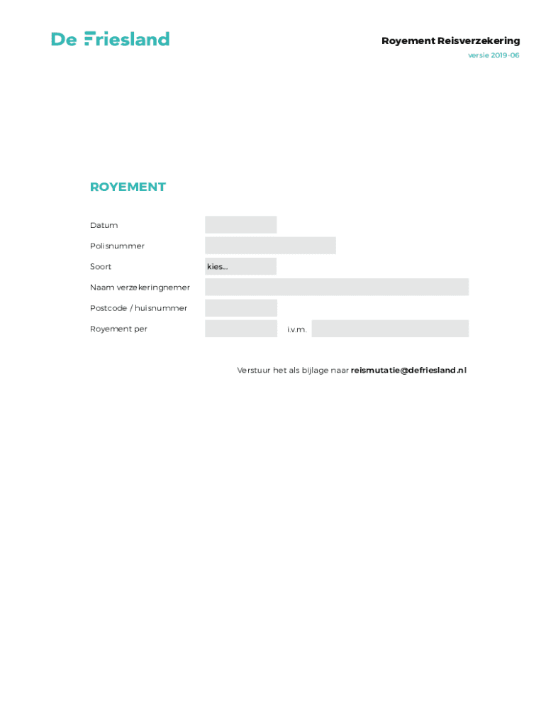 Movement Reisverzekering verse 201906ROYEMENT Datum Polisnummer Sorties... Nam verzekeringnemer Postcode / huisnummer Movement per.v.m. Versus the ALS village near reismutatie×Friesland.NL.