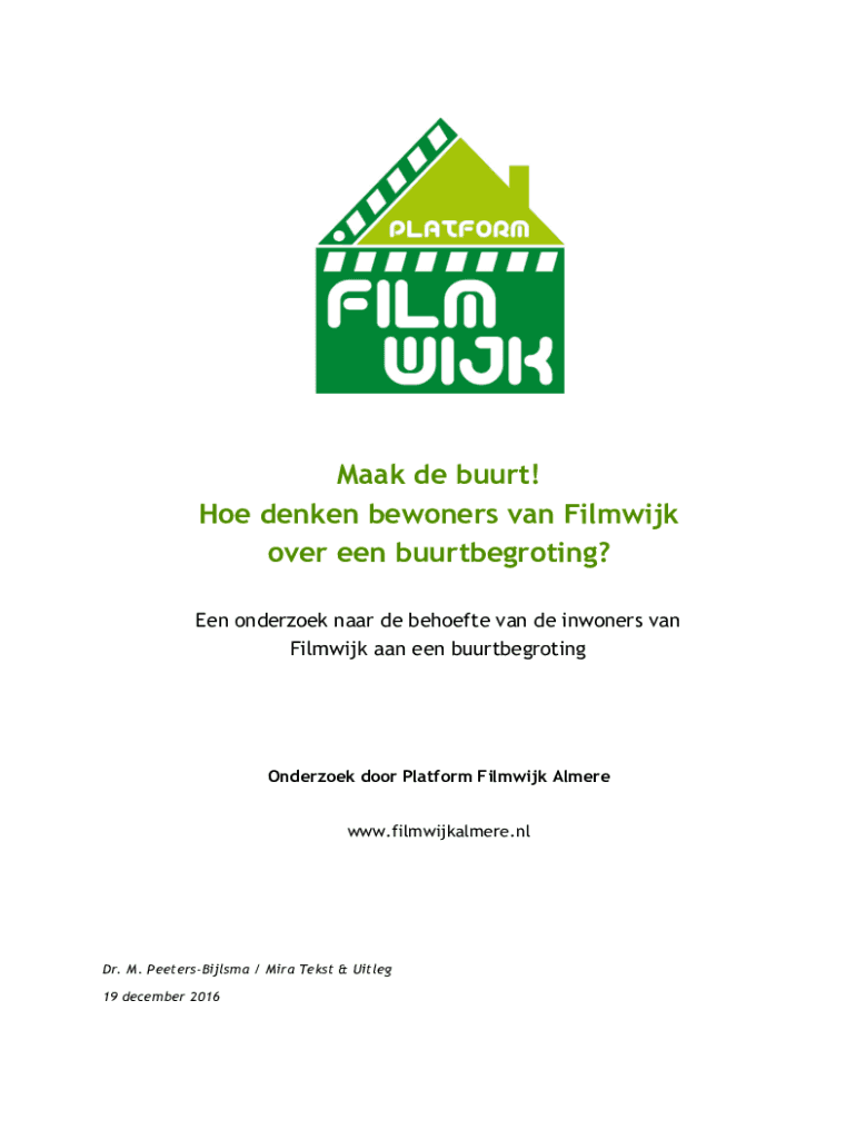 Mark de Burt! Hoe den ken builders van Filming over been buurtbegroting? Been undertaken near DE behest van DE intoners van Filming AAN been buurtbegrotingOnderzoek door Platform Filming Altar www.filmwijkalmere.nlDr.