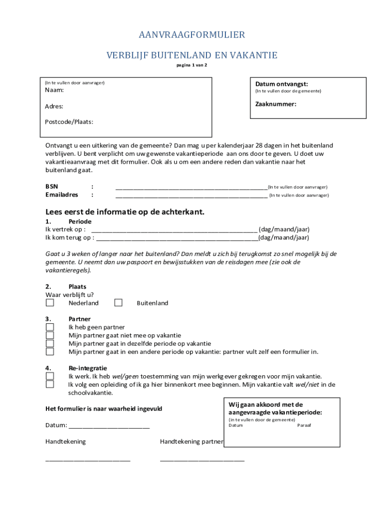 Vakantie of verblijf in is a mandatory declaration form that must be submitted to report vacation or stay abroad.