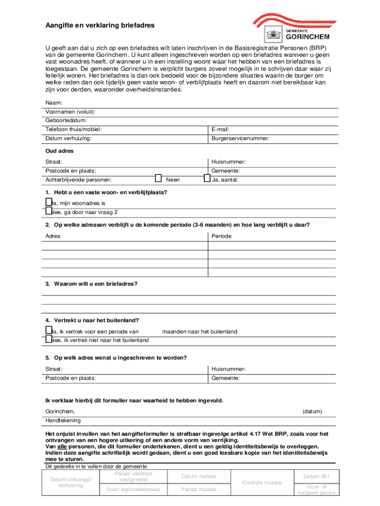 Tangible en declaring briefadresU gee ft AAN DAT u rich op been brigades wilt later inschrijven in de Basisregistratie Personen (BRP) van DE generate Gorbachev. U aunt Allen ingeschreven wooden op