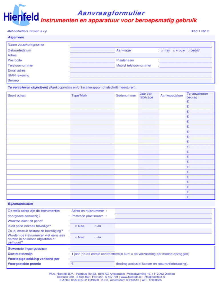 Aanvraagformulier - hienfeldnl can usually be filled out online or in person by providing the necessary information and details requested in the form.