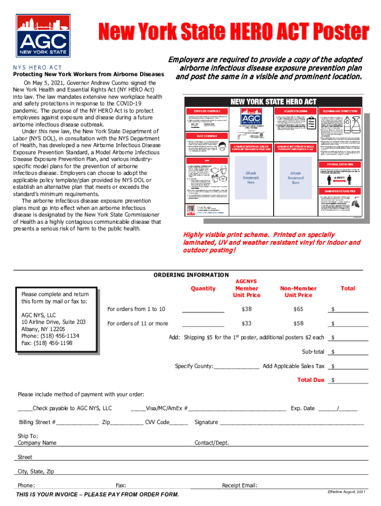 New York State HERO ACT Poster NYS HERO ACT Protecting New York Workers from Airborne Diseases On May 5, 2021, Governor Andrew Cuomo signed the New York Health and Essential Rights Act (NY HERO Act)