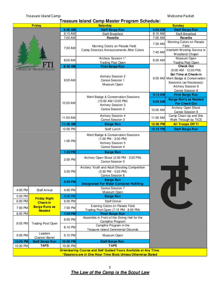 Treasure Island CampWelcome PacketWELCOME TO HISTORIC TREASURE ISLAND The Friends of Treasure Island (FTI) and the Treasure Island Camp Staff (TICS) wants you to enjoy your weekend with us. If you