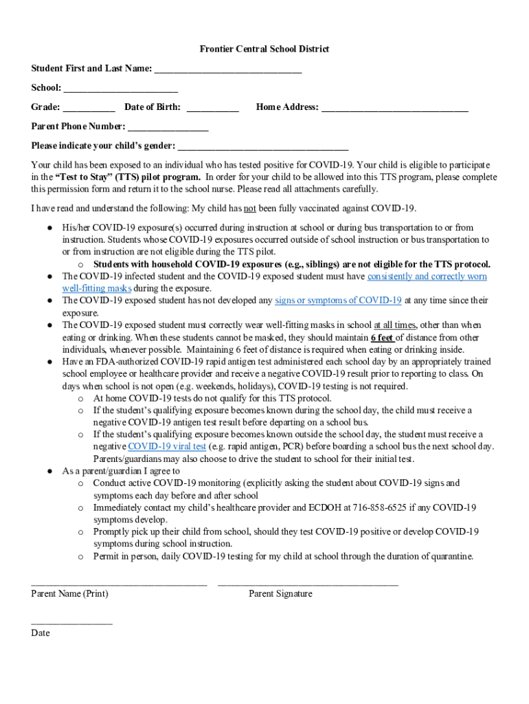Test to stay consent forms typically require individuals to report their personal information, contact details, recent exposure to COVID-19, and consent to testing protocols.