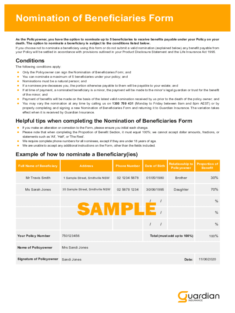 Anyone who has a Guardian insurance policy should consider filling out the insurance nomination form.