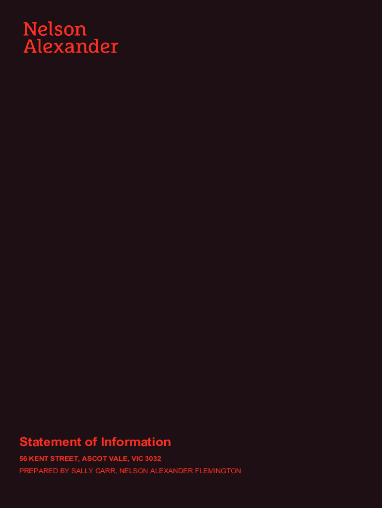 Statement of Information 56 KENT STREET, ASCOT VALE, VIC 3032 PREPARED BY SALLY CARR, NELSON ALEXANDER FLEMINGTONStatement of InformationSingle residential property located in the Melbourne metropolitan