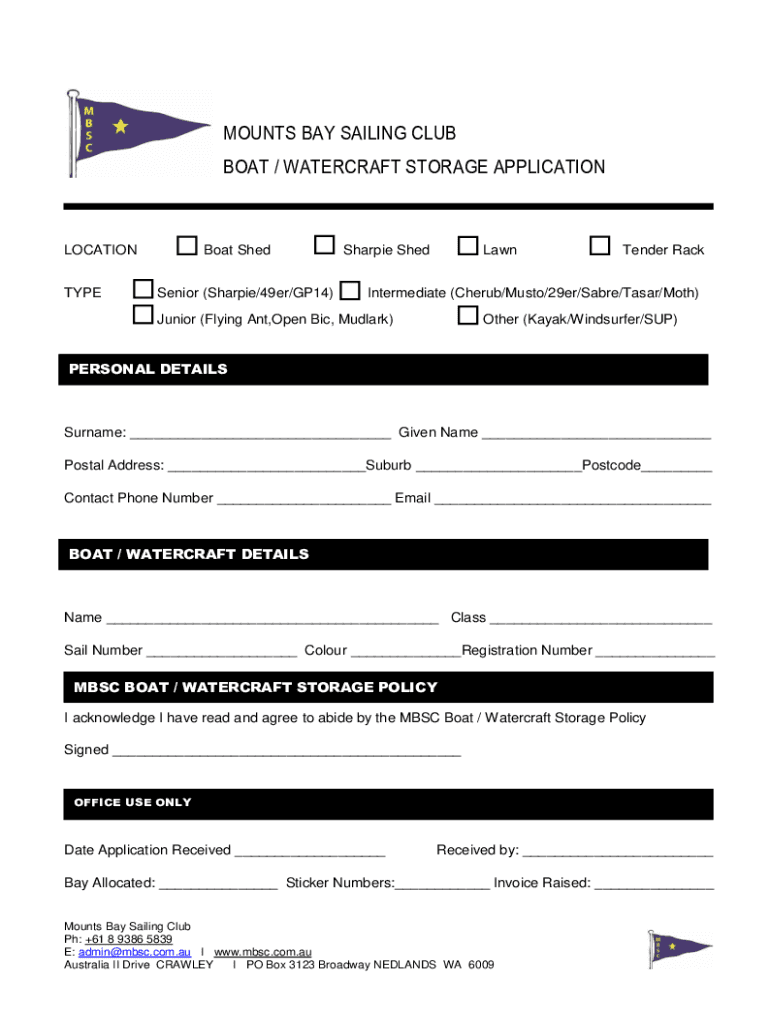 MOUNTS BAY SAILING CLUB BOAT / WATERCRAFT STORAGE APPLICATIONLOCATION Lifeboat Shed Senior (Sharpie×49er×GP14×Sharpie ShedLawnTender RackIntermediate (Cherub×Must×29er×Sabre×Tatar×Moth×Junior