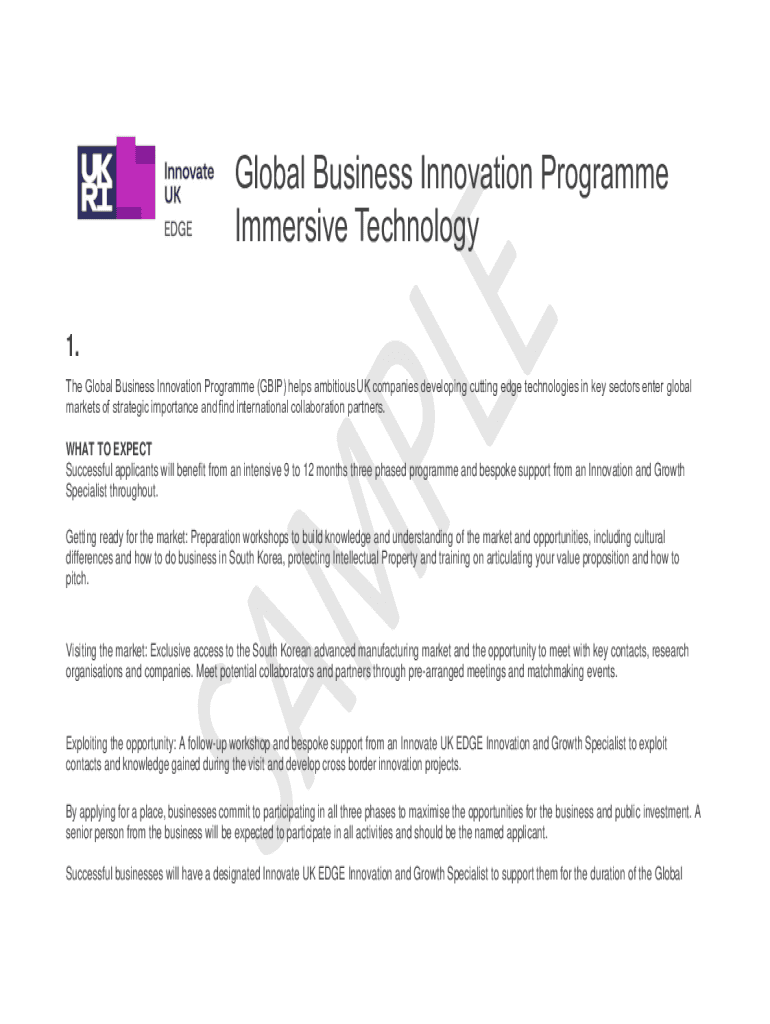 Global Business Innovation Program Immersive Technology 1. The Global Business Innovation Program (GRIP×helps ambitiousUKcompaniesdeveloping cutting edge technologies in key sectors enter global