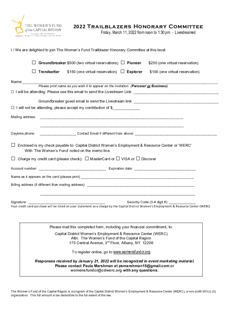 2022 Trailblazers Honorary Committee Friday, March 11, 2022, from noon to 1:30 pm Livestreamed / We are delighted to join The Women's Fund Trailblazer Honorary Committee at this level: Groundbreaker