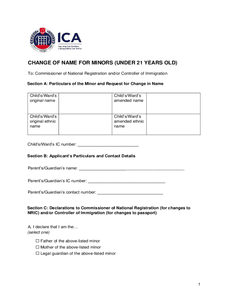 CHANGE OF NAME FOR MINORS (UNDER 21 YEARS OLD) To: Commissioner of National Registration and×or Controller of Immigration Section A: Particulars of the Minor and Request for Change in Name Child's×Wards