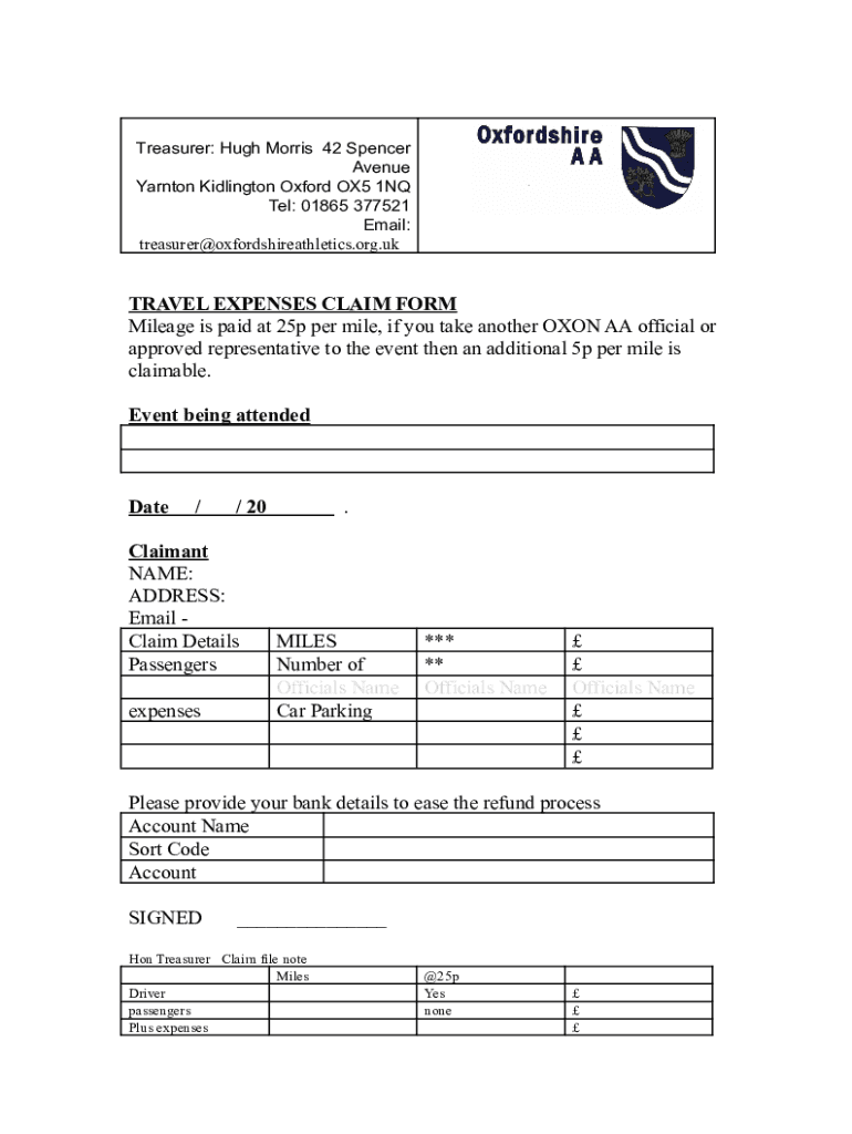 How to fill out oxon aa expenses claim