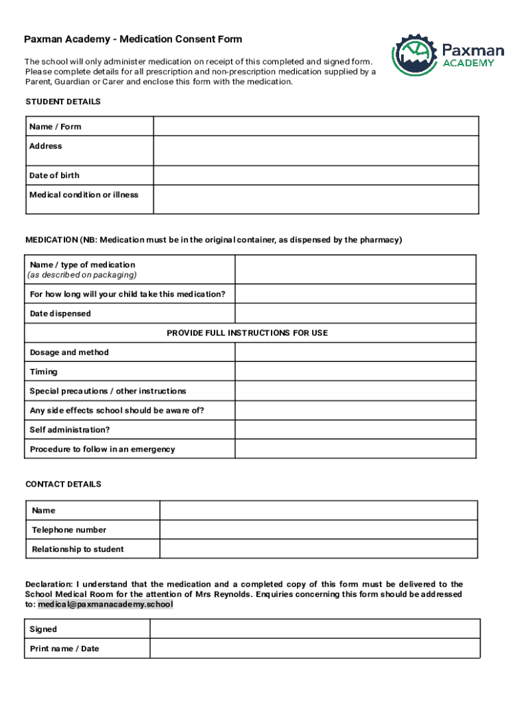 Email, fax, or share your paxman academy - medication form via URL. You can also download, print, or export forms to your preferred cloud storage service.