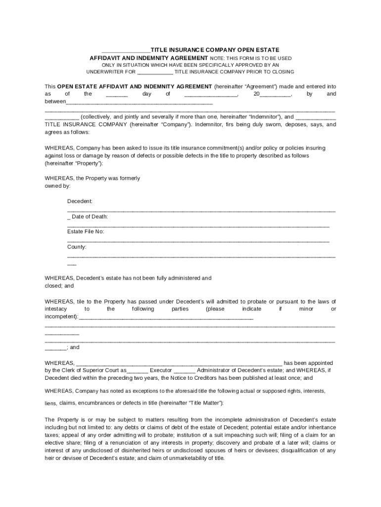 Template harrymarshlaw.comwp-contentuploadsTITLE INSURANCE COMPANY OPEN ESTATE AFFIDAVIT AND INDEMNITY ... instructions