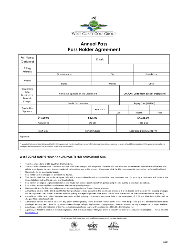 Get the free Annual Tri-Course Playing Pass Pass Holder Agreement
