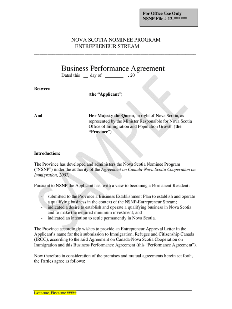 Get the free Business Performance Agreement - Nova Scotia Immigration