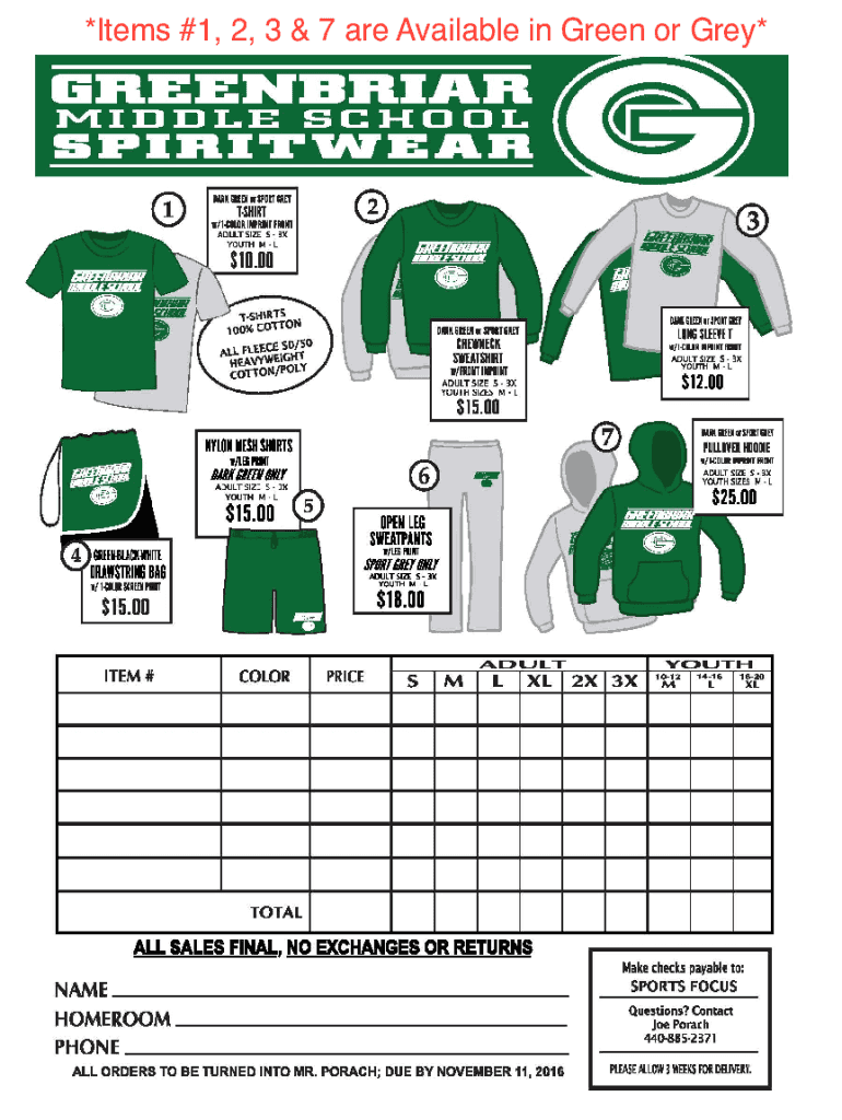 Anyone who wishes to purchase Greenbriar spiritwear needs to fill out the Greenbriar spiritwear formcdr. This form is required for all individuals who want to order spiritwear items such as t-shirts, hoodies, or other merchandise featuring the Greenbriar logo or design. It ensures that the correct items are ordered, personalized if desired, and that the necessary payment is made. Whether you are a student, parent, alumni, or supporter of Greenbriar, filling out the formcdr is necessary to obtain the desired spiritwear.