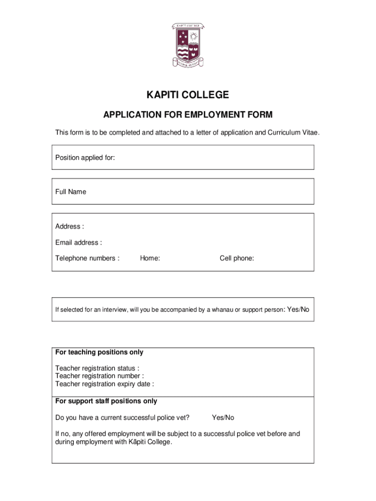 WAPITI COLLEGE APPLICATION FOR EMPLOYMENT FORM This form is to be completed and attached to a letter of application and Curriculum Vitae. Position applied for:Full Headdress : Email address : Telephone