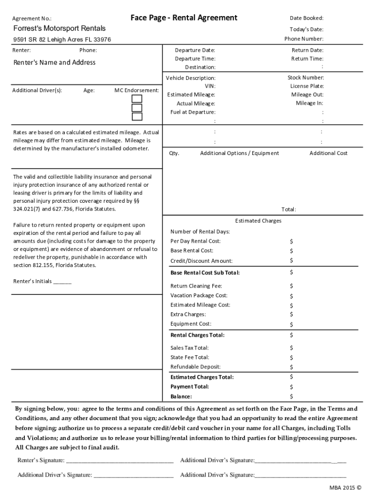 Get the free Agreement No.: Face Page Rental Agreement Date Booked ...