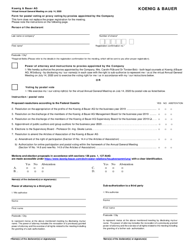 Get the free Form for postal voting or proxy voting by proxies