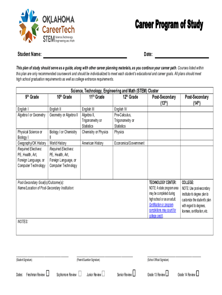 Student Name:Date:This plan of study should serve as a guide, along with other career planning materials, as you continue your career path. Courses listed within this plan are only recommended coursework