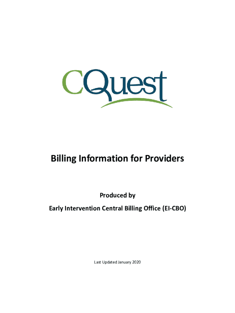 Billing Information for ProvidersProduced by Early Intervention Central Billing Office (EI CBO×Last Updated January 2020Billing Information for ProvidersTABLE OF CONTENTS 1. Introduction ..........................................................................................................................................