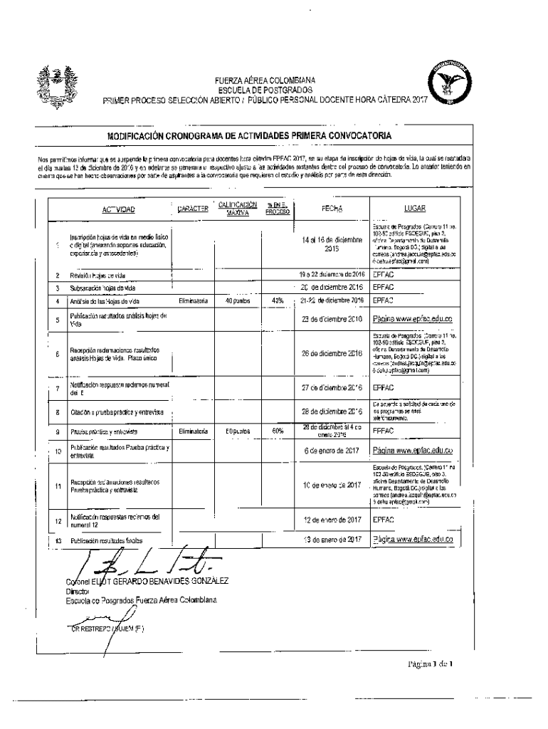 PRIMER PROCESS SELECTION ALBERTO 1 PBL ICO PERSONAL DOCENT HORA TERRA 2017MODIFICACIN CHRONOGRAM DE ACTIVITIES PRIMER CONVOCATORIA