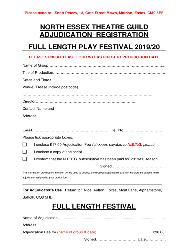 Get the free NORTH ESSEX THEATRE GUILD ADJUDICATION REGISTRATION FULL ...