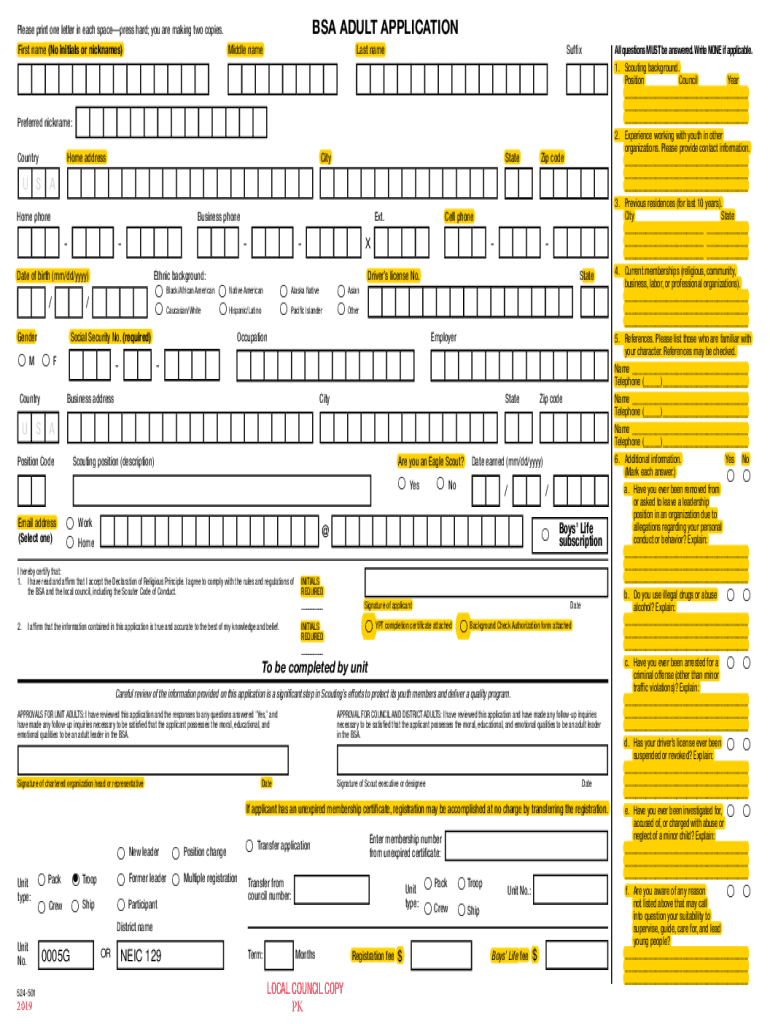 Troop 5×Crew 5 Application Instructions For both Youth and Adult Apps Please be sure you are using the correct form. There are separate forms for Troop 5B (boys×, Troop 5G (girls) and Crew 5 (coed×.