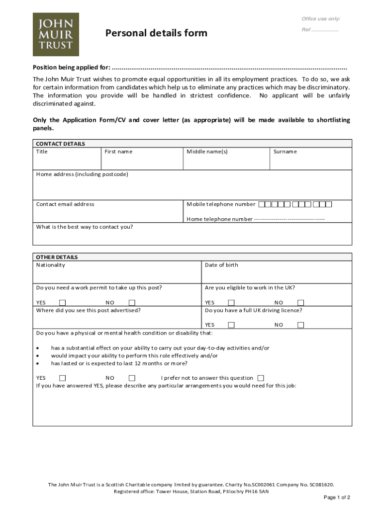 Office use only: Ref ................... Personal details composition being applied for: ..........................................................................................................................