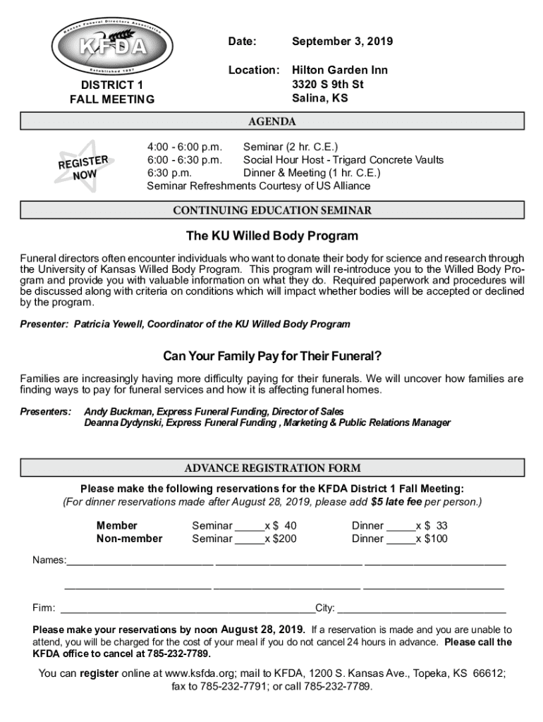 Date:September 3, 2019Location:Hilton Garden Inn3320 S 9th Stealing, DISTRICT 1 FALL MEETINGAGENDA4:00 6:00 p.m. Seminar (2 hr. C.E.× 6:00 6:30 p.m. Social Hour Host Tigard Concrete Vaults 6:30 p.m.