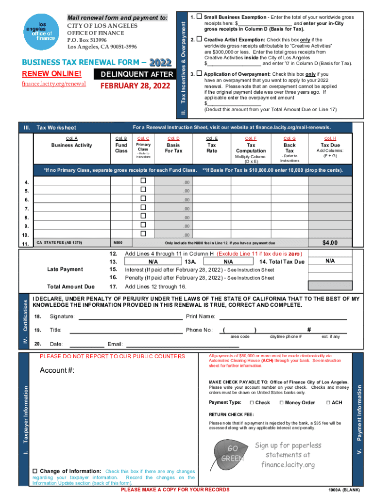 Get the free Business Tax Renewal InstructionsLos Angeles Office of ... - finance lacity