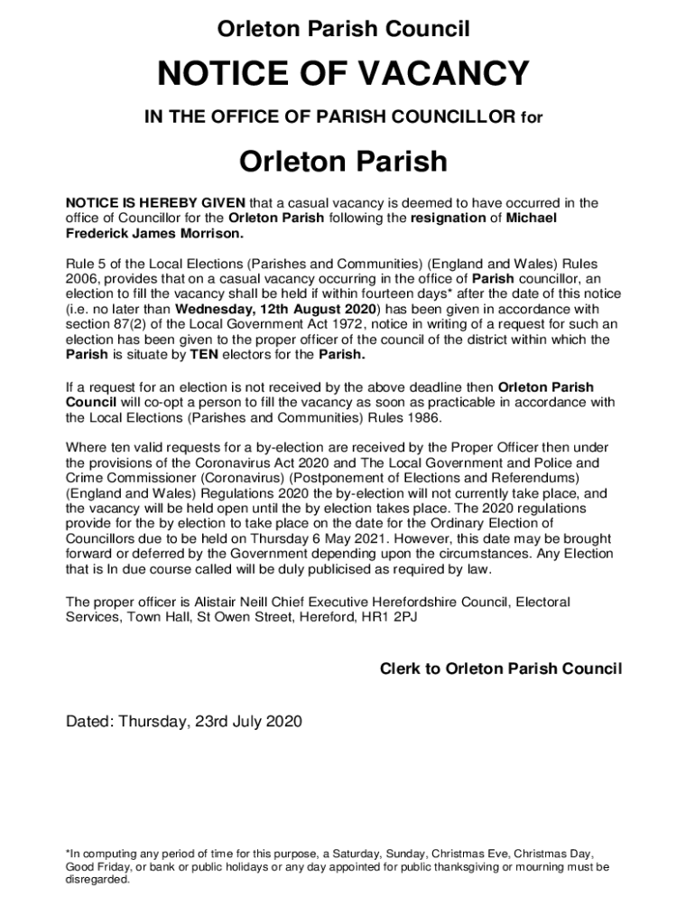 Get the free Guidance for Parish ClerksParish council vacancies ...
