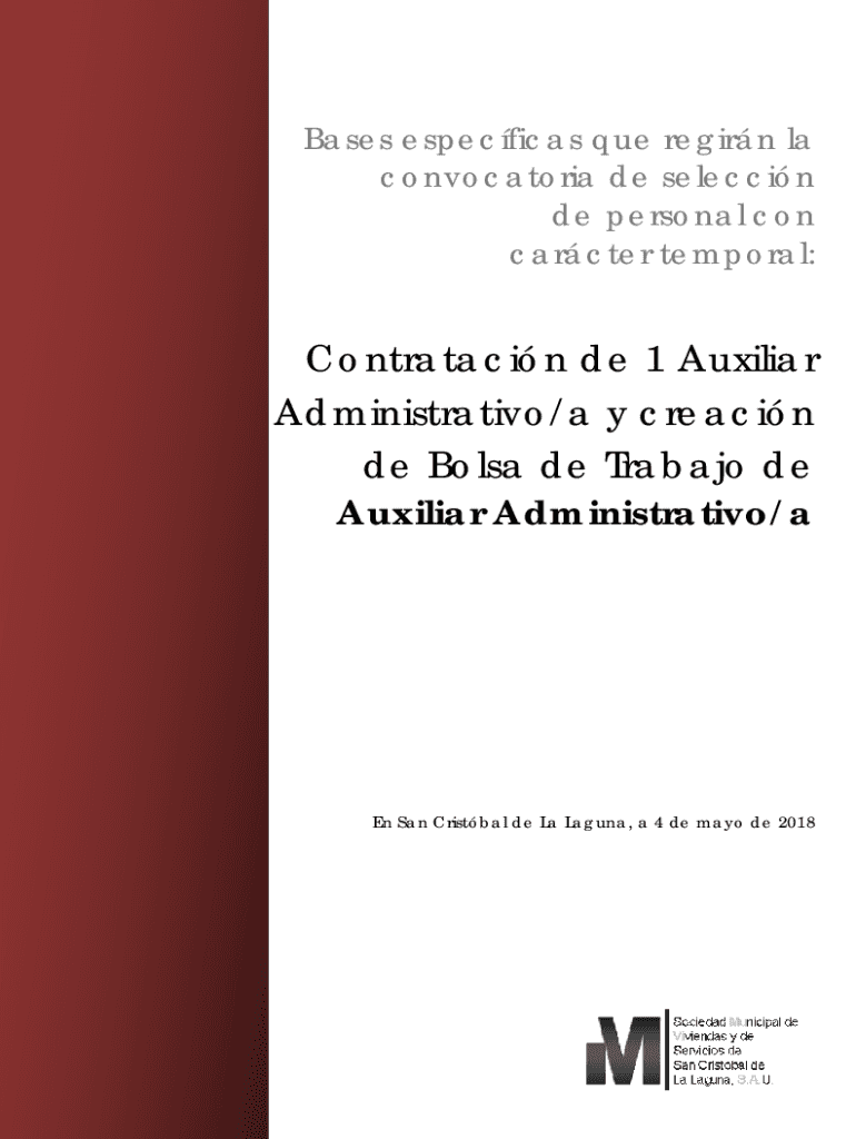 Bases specifics Que region la convocatoria de selection DE personal con Carter temporal:Contratacin de 1 Auxiliary Administrative×a y creating DE Balsa de Trabajo de Auxiliar Administrative×AEN