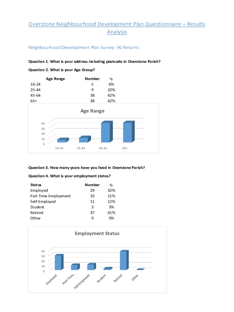 Overtone Neighborhood Development Plan Questionnaire Results Analysis Neighborhood Development Plan Survey: 90 Returns Question 1. What is your address including postcode in Overtone Parish? Question