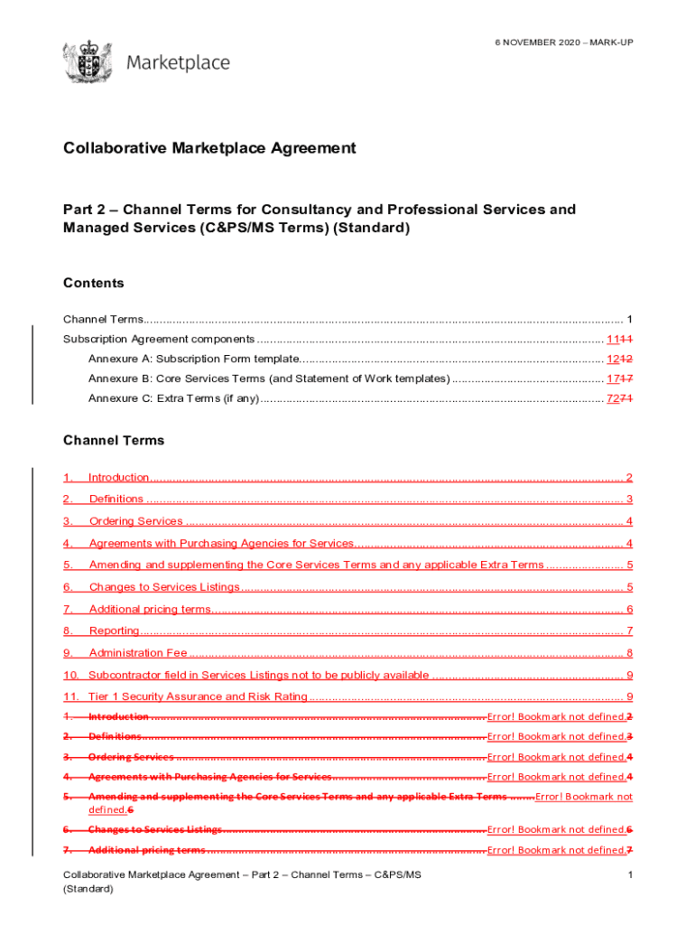 6 NOVEMBER 2020 MARKUPCollaborative Marketplace AgreementPart 2 Channel Terms for Consultancy and Professional Services and Managed Services (CAPS×MS Terms) (Standard×Contents Channel Terms....................................................................................................................................................