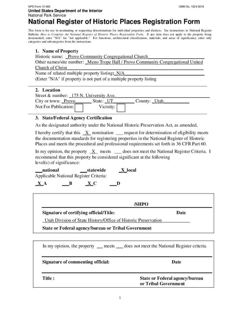 NPS Form 10900OMB No. 10240018United States Department of the Interior National Park ServiceNational Register of Historic Places Registration Form This form is for use in nominating or requesting