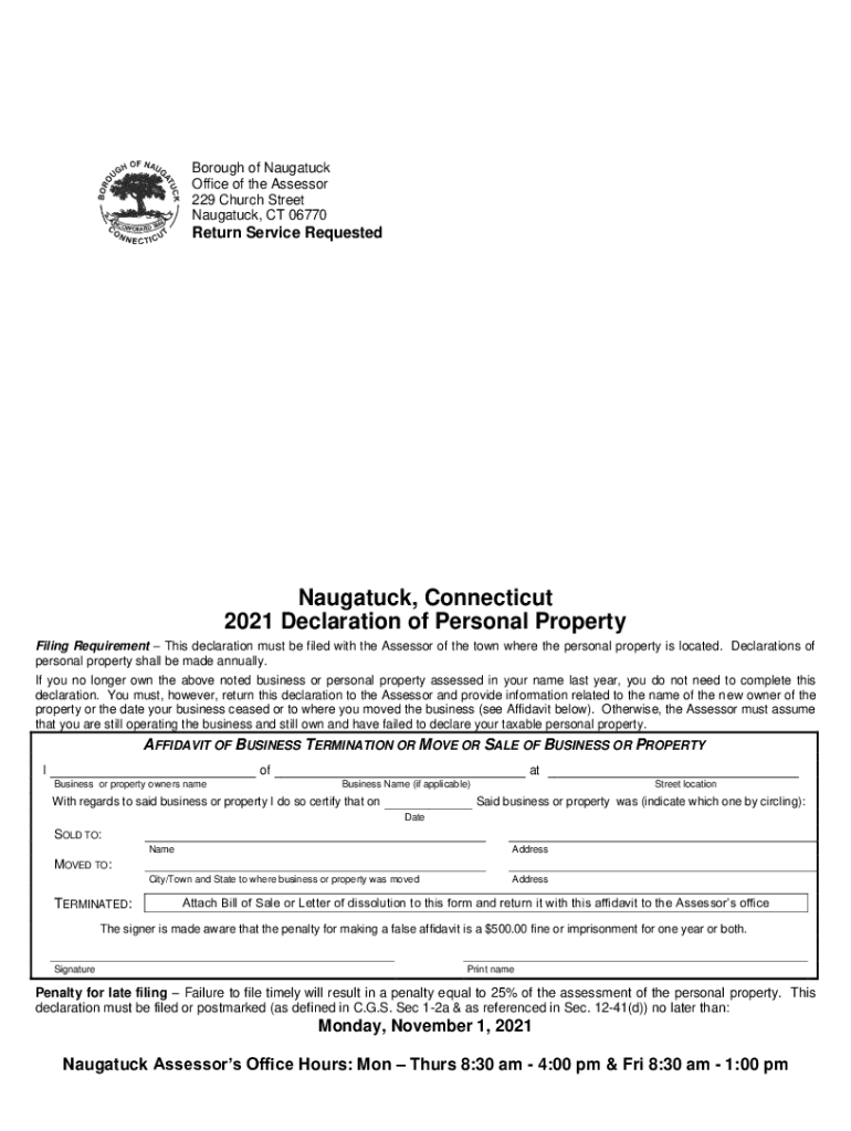 Borough of Naugatuck Office of the Assessor 229 Church Street Naugatuck, CT 06770Return Service RequestedNaugatuck, Connecticut 2021 Declaration of Personal Property Filing Requirement This declaration