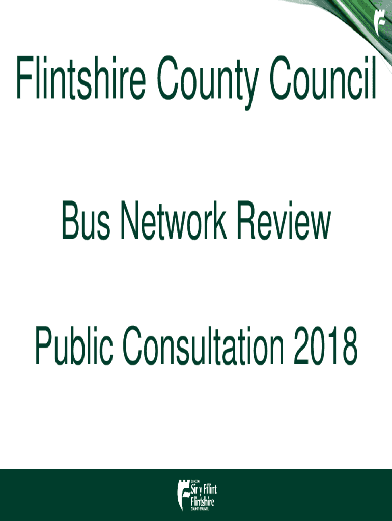 Flint shire County Council Bus Network Review Public Consultation 2018The Councils Current PositionProposalsMore than 55 bus routes operate across Flint shire on a daily basis. These journeys are