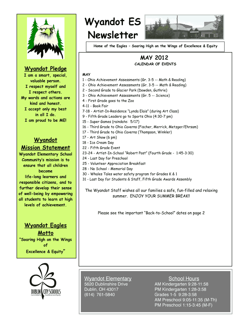 Get the free Wyandot ES Newsletter Home of the Eagles Soaring High on the Wings of Excellence &am...