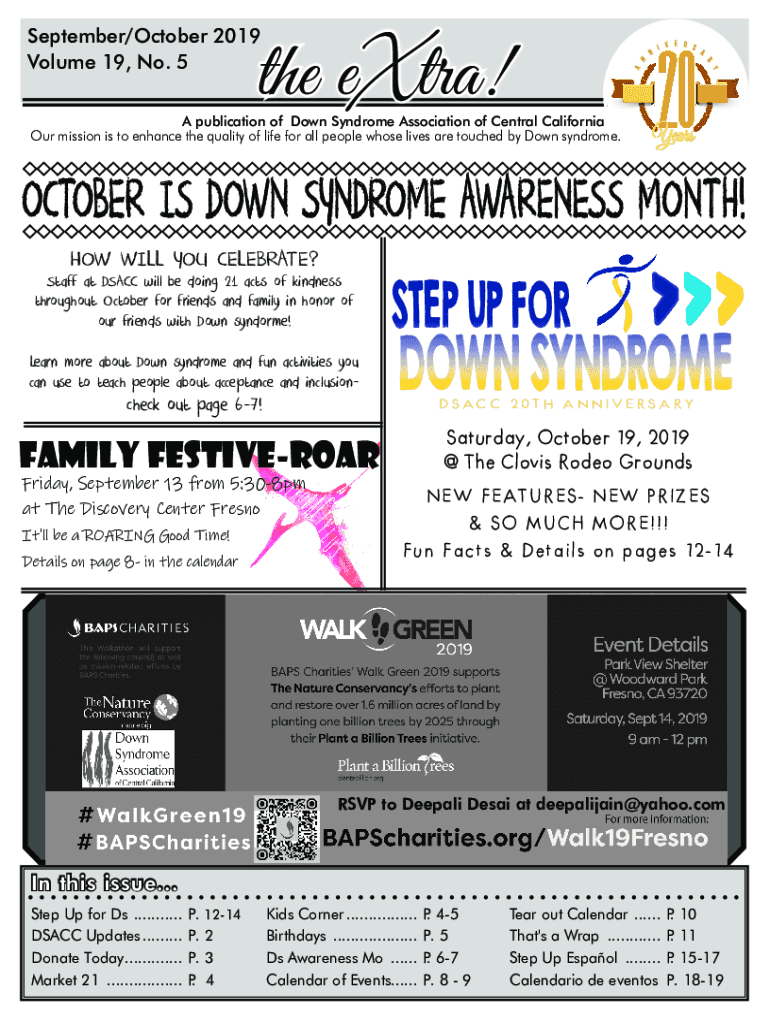 September×October 2019 Volume 19, No. 5the extra! A publication of Down Syndrome Association of Central California Our mission is to enhance the quality of life for all people whose lives are touched