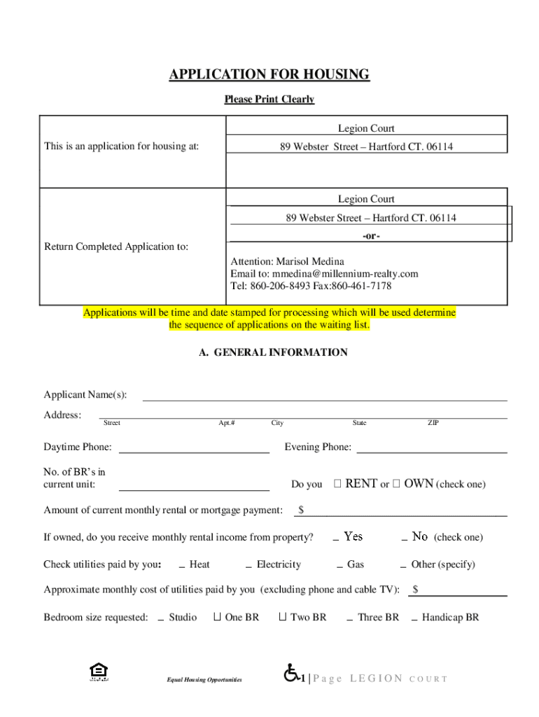 APPLICATION FOR HOUSING Please Print Clearly Legion Court 89 Webster Street Hartford CT. 06114This is an application for housing at:Legion Court 89 Webster Street Hartford CT. 06114 return Completed