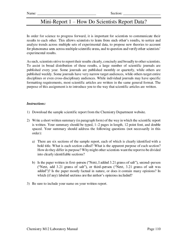 Name: ___Section: ___Misreport 1 How Do Scientists Report Data? In order for science to progress forward, it is important for scientists to communicate their results to each other. This allows scientists