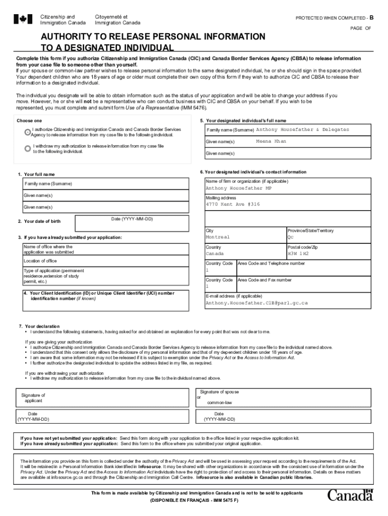 Get the free anthonyhousefather.libparl.ca wp-content uploadsIMM 5475 E : AUTHORITY TO RELEASE PE...