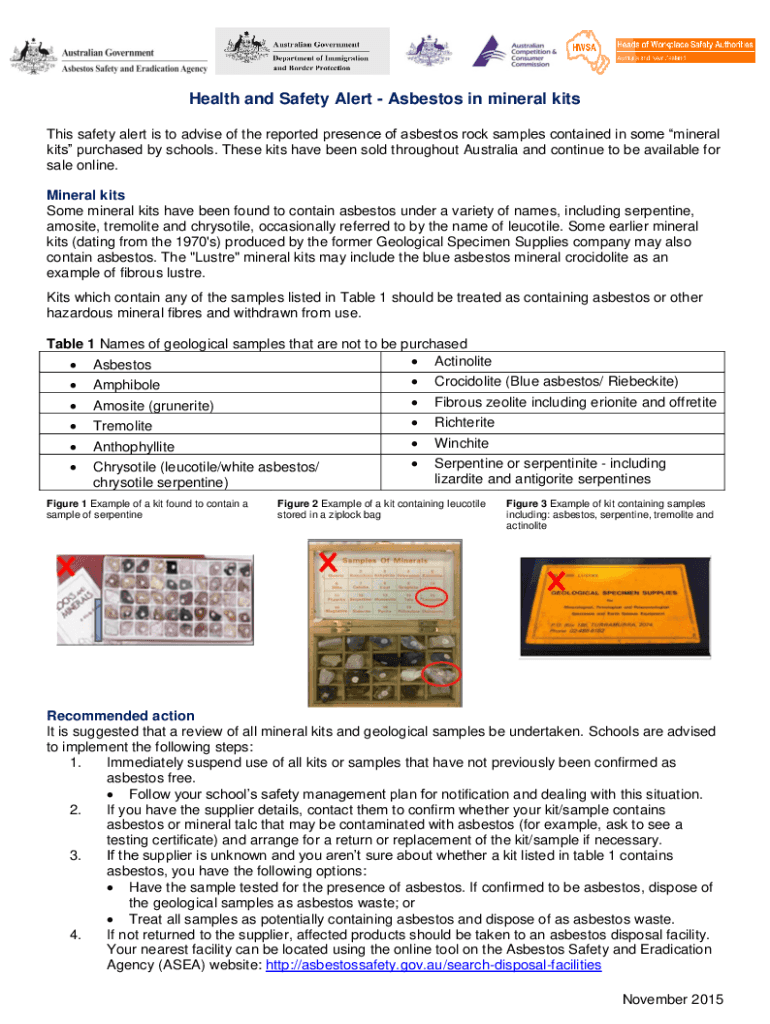 Get the free Health and safety alert - Asbestos in mineral kits ...